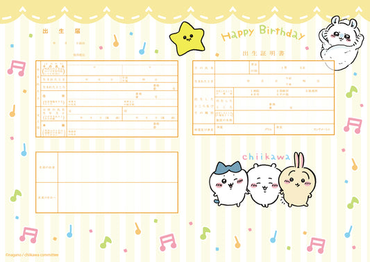出生届 ちいかわ(yellow)【オリジナル命名紙付】